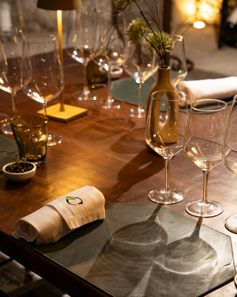 L’ambiente di Casa Caponi è pensato per far sentire gli ospiti come a casa. Le sale, denominate “stanze”, sono arredate con elementi vintage e citazioni cinematografiche, creando un’atmosfera calda e accogliente. Particolare attenzione è riservata alla “Grotta”, una cantina con pietre a vista che ospita degustazioni private e una selezione di vini locali.