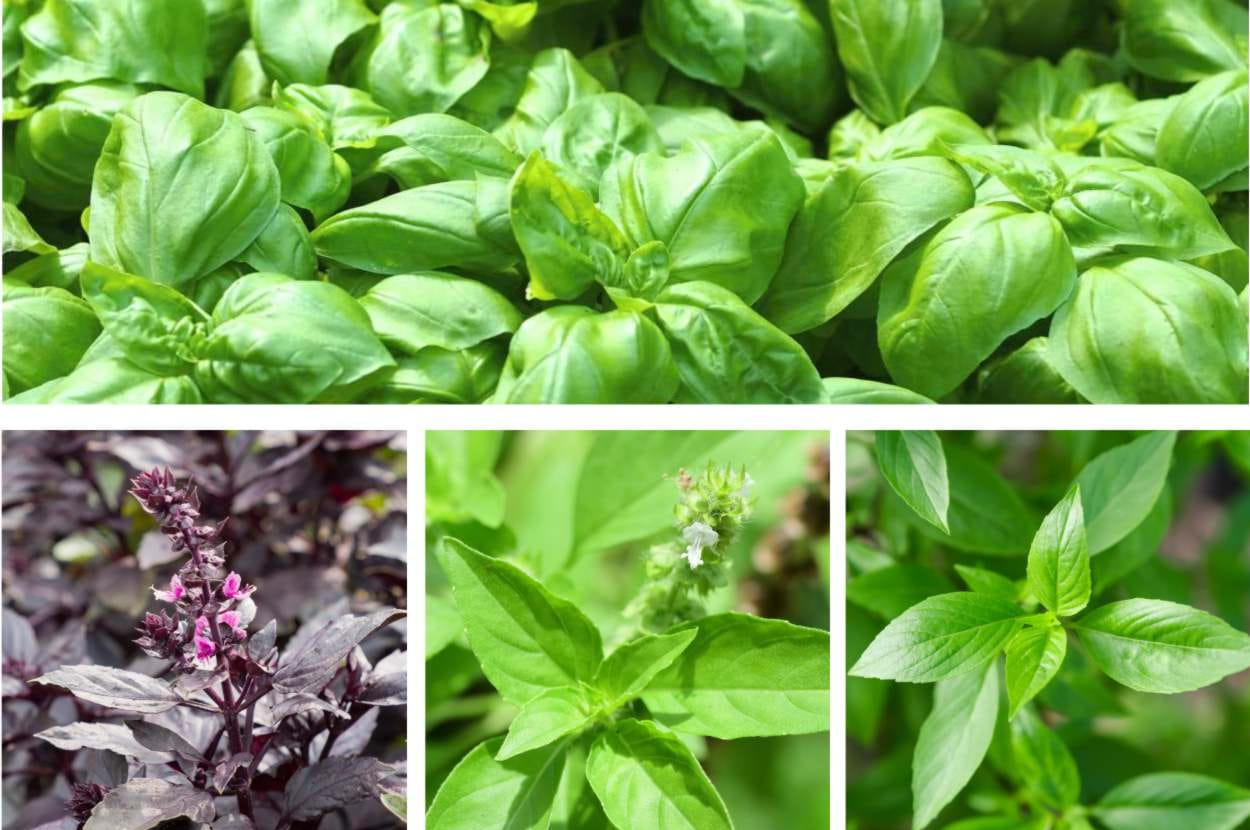Esistono circa 40 tipi di basilico, ma quelli comunemente usati sono il basilico aromatico gigante genovese, il basilico a foglia di lattuga bolloso, il basilico napoletano (che ha un aroma che ricorda la menta), il basilico fino verde. Altre varietà sono il “fine verde compatto”, di taglia ridotta, il “mammouth” ha foglie larghissime ed è il tipo più adatto ad essere essiccato. Esistono infine varietà a foglie colorate: il basilico a foglie rosse dentellate ed il basilico opale scuro coltivate principalmente a scopo decorativo.