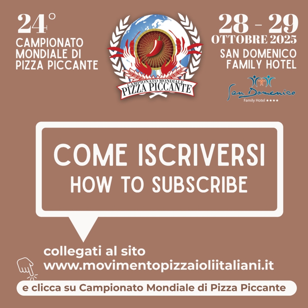 Tutto è spiegato sul nostro sito www.movimentopizzaioliitaliani.it. Basta andare nella sezione dedicata al Campionato Mondiale di Pizza Piccante, scegliere la gara, compilare il modulo e inviarlo. Dopo il pagamento si riceve la conferma ufficiale. Abbiamo pensato a un sistema semplice e trasparente per permettere a tutti di partecipare con facilità.