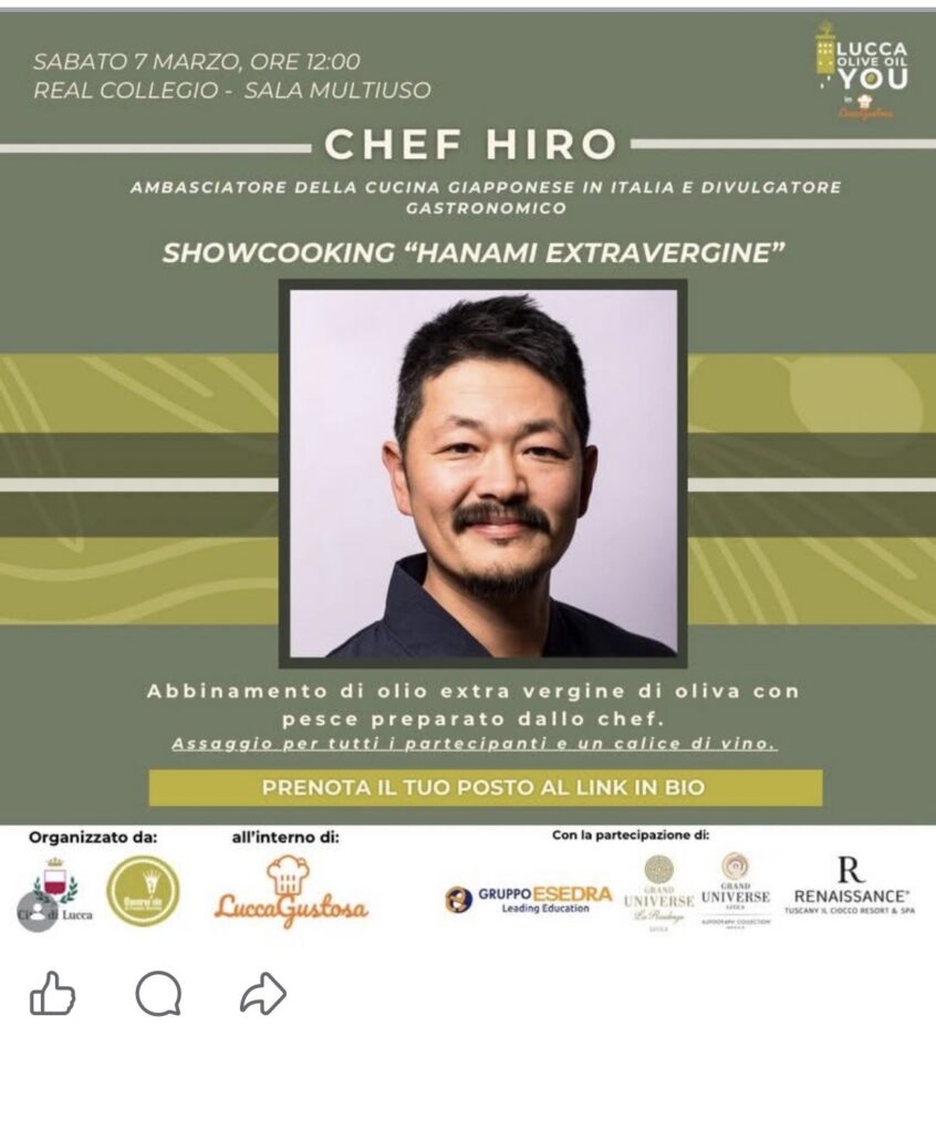 Non è mancata la componente internazionale: uno showcooking dedicato all’abbinamento tra sashimi e oli monocultivar ha portato sul palco lo chef Masaki Kuroda, mentre la pasticceria ha incontrato l’extravergine grazie alla pastry chef Sandra Bianchi.