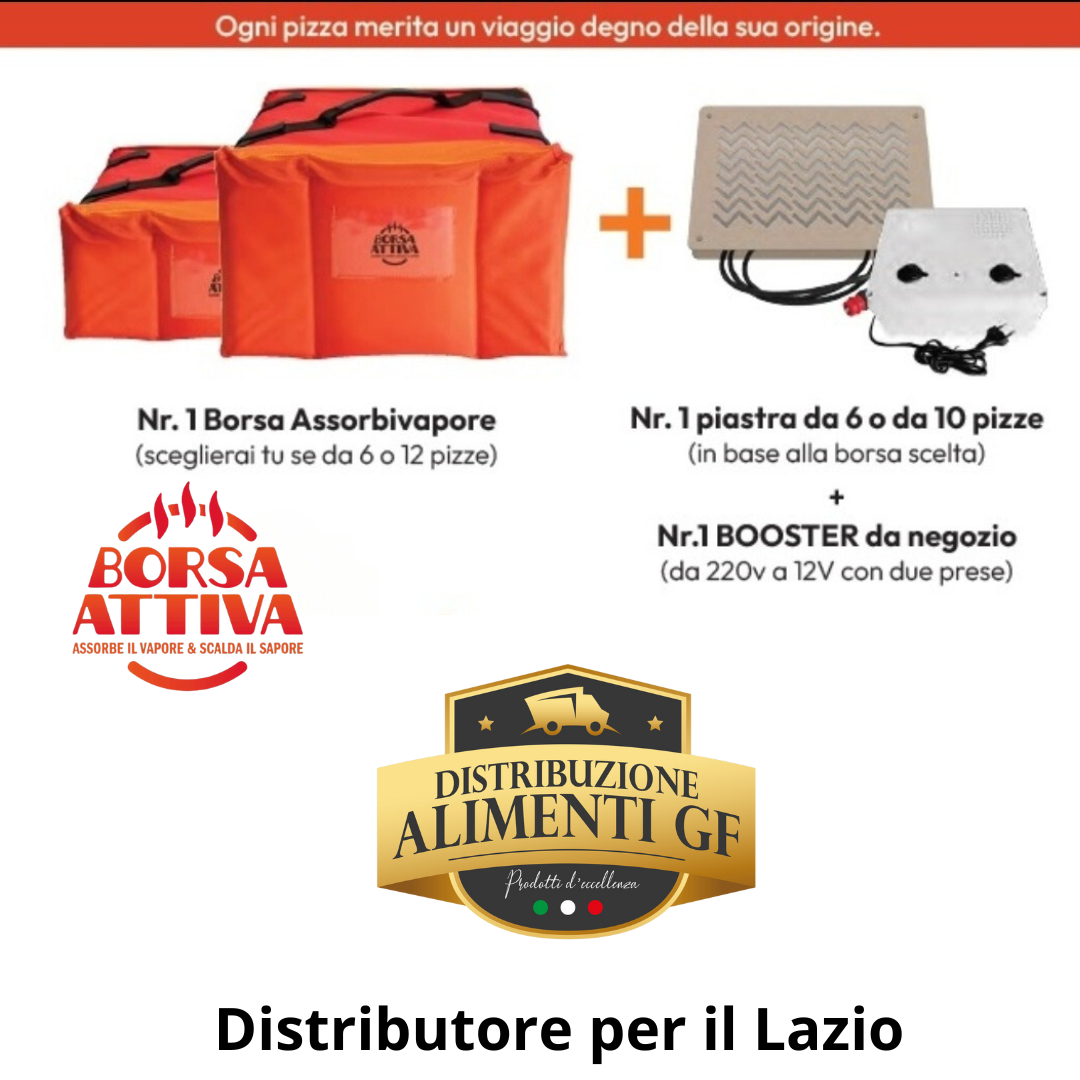 La novità più sorprendente di questa collaborazione è la Borsa Termica Borsattiva, progettata con tecnologia all’avanguardia per garantire che le pizze arrivino ai clienti sempre calde e fragranti. Dotata di un sistema di assorbimento del vapore e uno scaldapizza integrato, questa borsa termica riduce del 25% l’umidità all’interno, assicurando che le pizze rimangano asciutte e gustose fino all’ultimo morso.