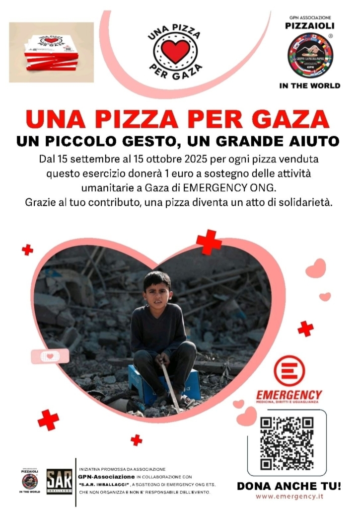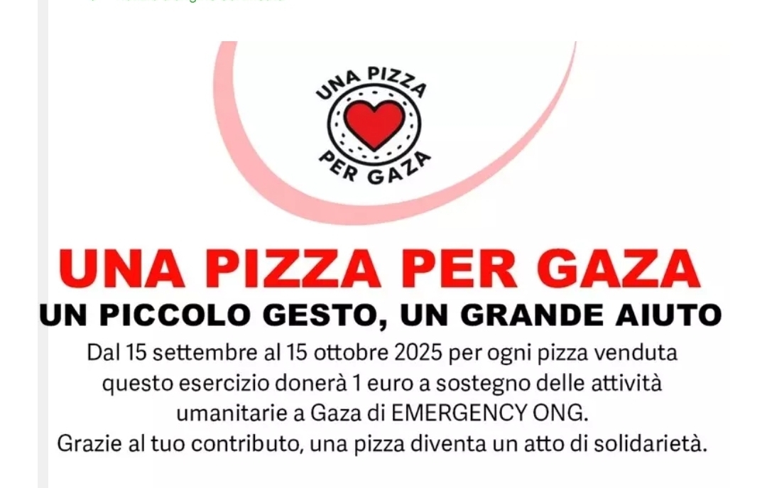L’obiettivo è chiaro: ogni pizzeria che aderirà donerà un euro per ogni pizza venduta, destinandolo direttamente a Emergency, impegnata sul campo a garantire cure, medicine e interventi chirurgici a Gaza, con particolare attenzione ai bambini.